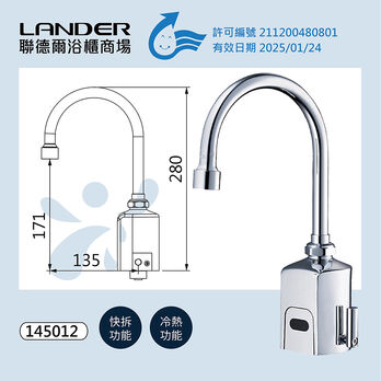 聯德爾《TAP-145012》感應式龍頭(台灣製造/全銅實心/DC-需電池/AC-插電須加購)