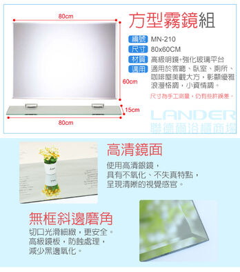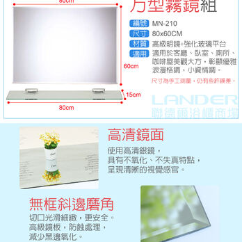 聯德爾《MN-210》長方形除霧鏡組80公分