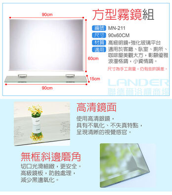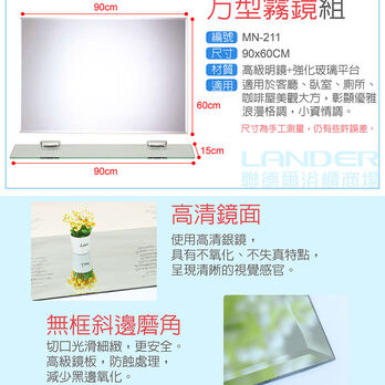 聯德爾《MN-211》長方形除霧鏡組90公分