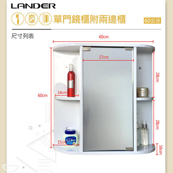 聯德爾《WB-60D》單門單面鏡櫃60公分-附兩邊櫃