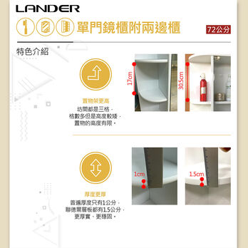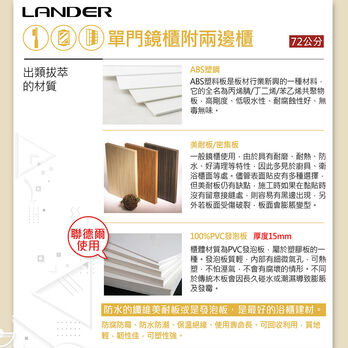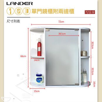 聯德爾《WB-72D》單面鏡櫃72公分-附兩邊櫃