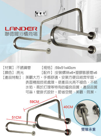 聯德爾《LN-5204》安護不鏽鋼雙U型安全扶手