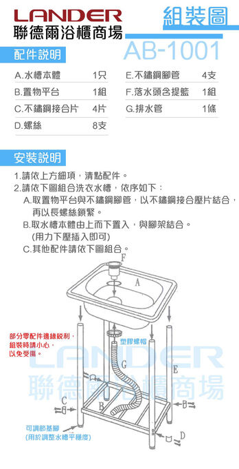 聯德爾《AB-1001》ABS組合式洗衣水槽(牙色)台灣製造