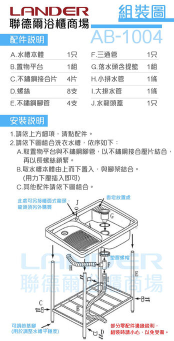 聯德爾《AB-1004》ABS組合式洗衣水槽(牙色)