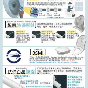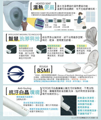 產品特色 : 就座開關、智慧省電、便座.便蓋簡單拆卸易清潔、溫度調節(水溫/便座)、