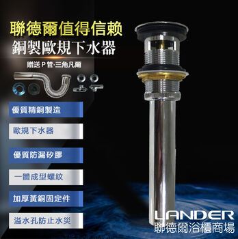 下水器:歐式按壓式有溢水孔下水器,出水孔加大,排水速度快,不易堵塞 P管(排水管):由牆壁排水使用 三角凡爾:角閥,為牆壁出水處的冷熱水止水開關 材質:銅電鍍(鉻色)