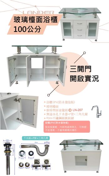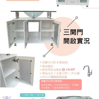 櫃材質:PVC發泡板三層防水漆(適用於乾濕分離的浴室)