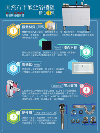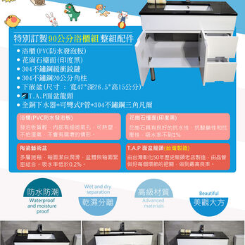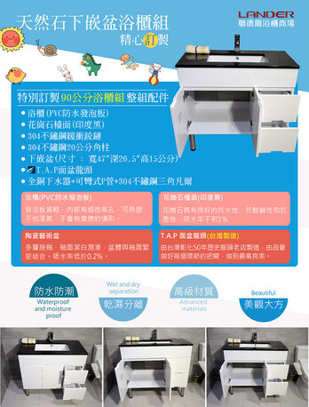 聯德爾《DZ-90Y-595-224》天然石下嵌盆浴櫃組90公分(防水發泡板 下嵌盆 花崗石檯面)