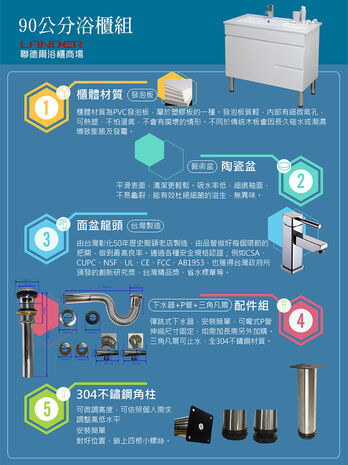 聯德爾《NB-900L-224》浴櫃組90公分-左盆(PVC防水發泡板、台灣製面盆龍頭)