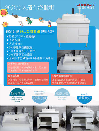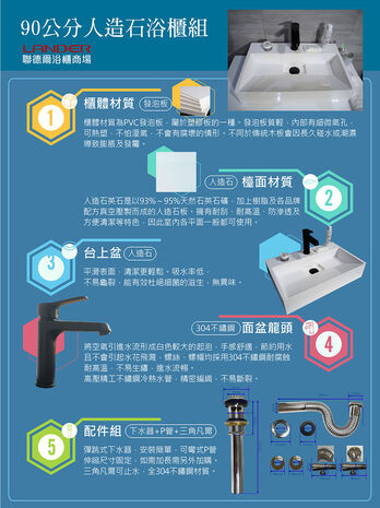 聯德爾《NB-900LG-6038-804》90公分人造石浴櫃組(PVC防水發泡板 台上盆)