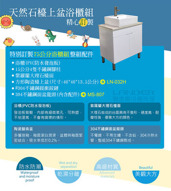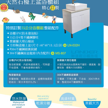 聯德爾《WTL-紫羅蘭-032》天然石檯上盆浴櫃組75公分-售完