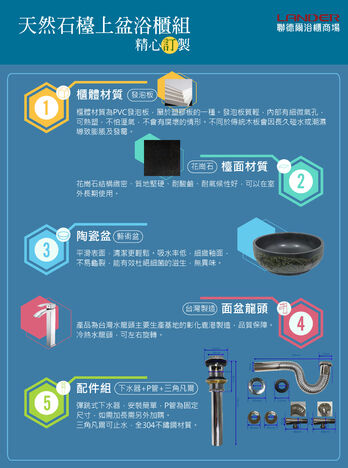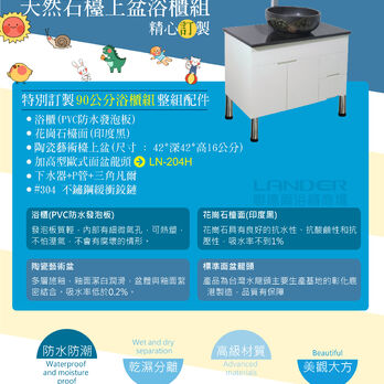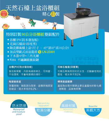 (停產中)聯德爾《DR-90YH-811》天然石檯上盆落地式浴櫃組90公分