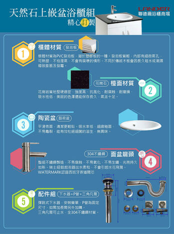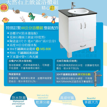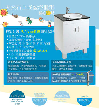 聯德爾《HDU-60Y-400U》天然石上嵌盆浴櫃組60公分