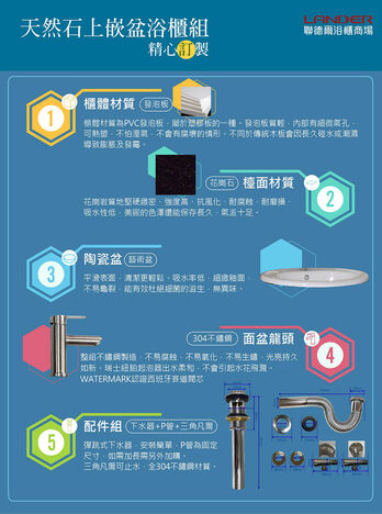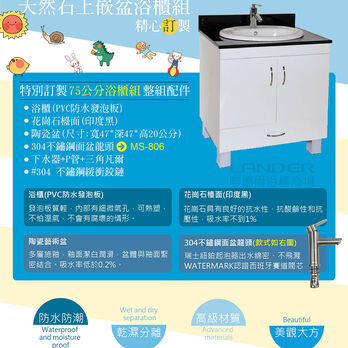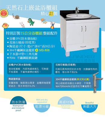 聯德爾《HDU-75Y-560》天然石上嵌盆浴櫃組75公分