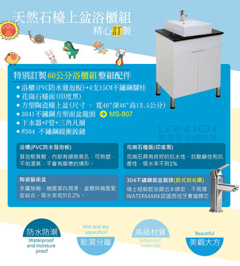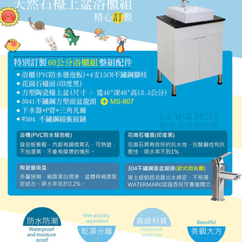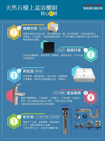 聯德爾《WTL-60Y-032H》天然石檯上盆浴櫃組60公分