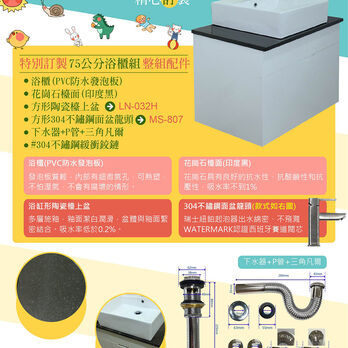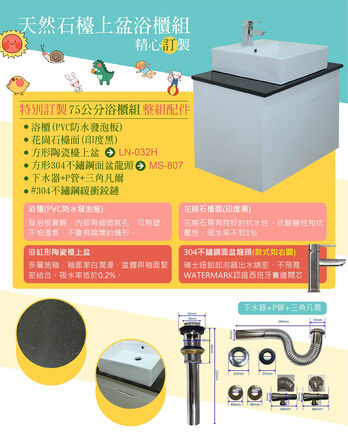 - 陶瓷盆+櫃子 (不包含龍頭、彈跳式下水器、P管、三角凡爾)