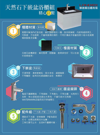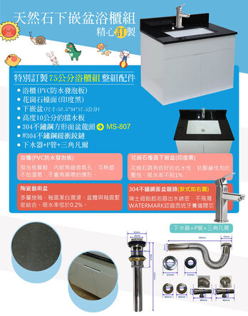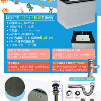 聯德爾《DZ-75Y-460B》天然石下嵌盆浴櫃組75公分