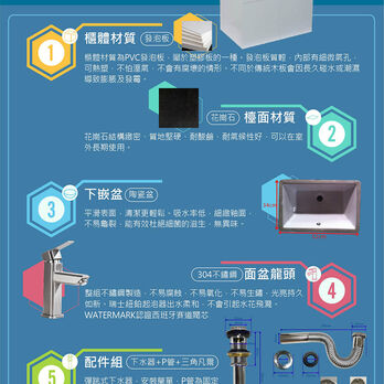 - 陶瓷盆+櫃子 (包含龍頭、彈跳式下水器、P管、三角凡爾)