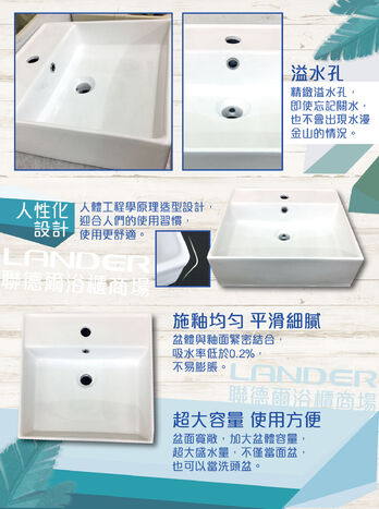 聯德爾《LN-032H》方形陶瓷檯上盆
